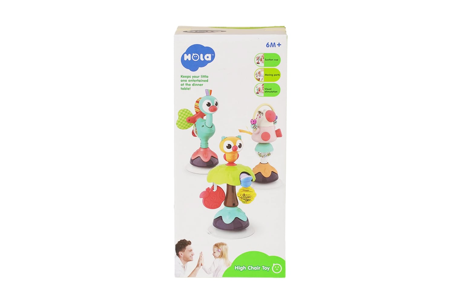 «جغجغه چسبان طرح طاووس بامزه» محصولی از برند معتبر هولی‌تویز (Huile Toys) می‌باشد. این اسباب بازی برای کودکان بالای ۶ ماه ساخته و طراحی شده است و بسیاری از استانداردهای جهانی برای اسباب‌بازی‌های کودکان مانند رنگ بهداشتی و غیر شیمیاییِ بدون سرب ، پلاستیک با کیفیت و مقاوم در برابر ضربه، نداشتن اضافات پلاستیکی و قسمت تیز بر روی محصول و … در طراحی و ساخت آن رعایت شده است.