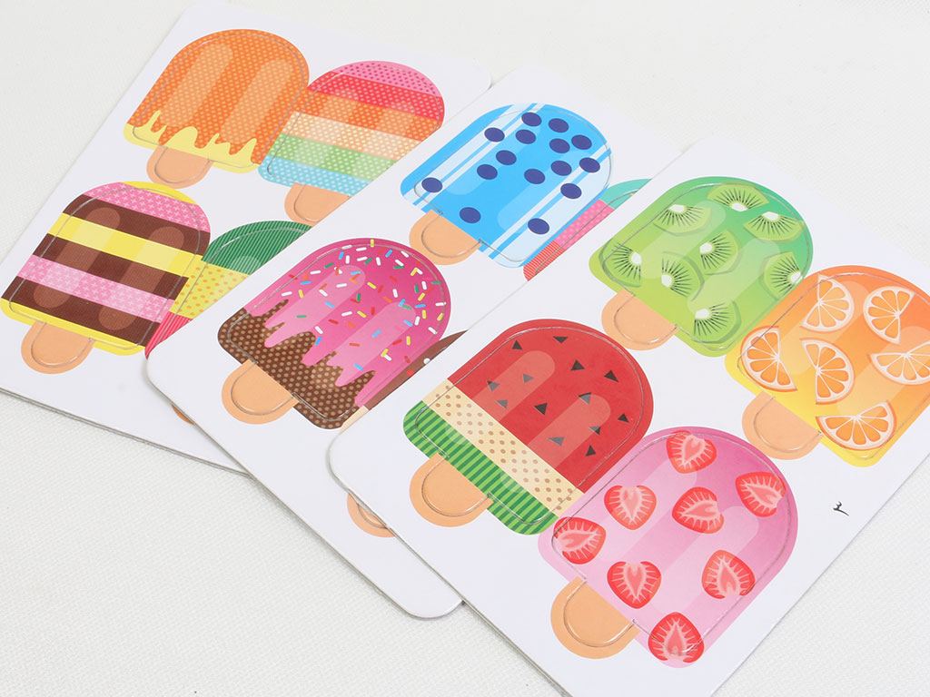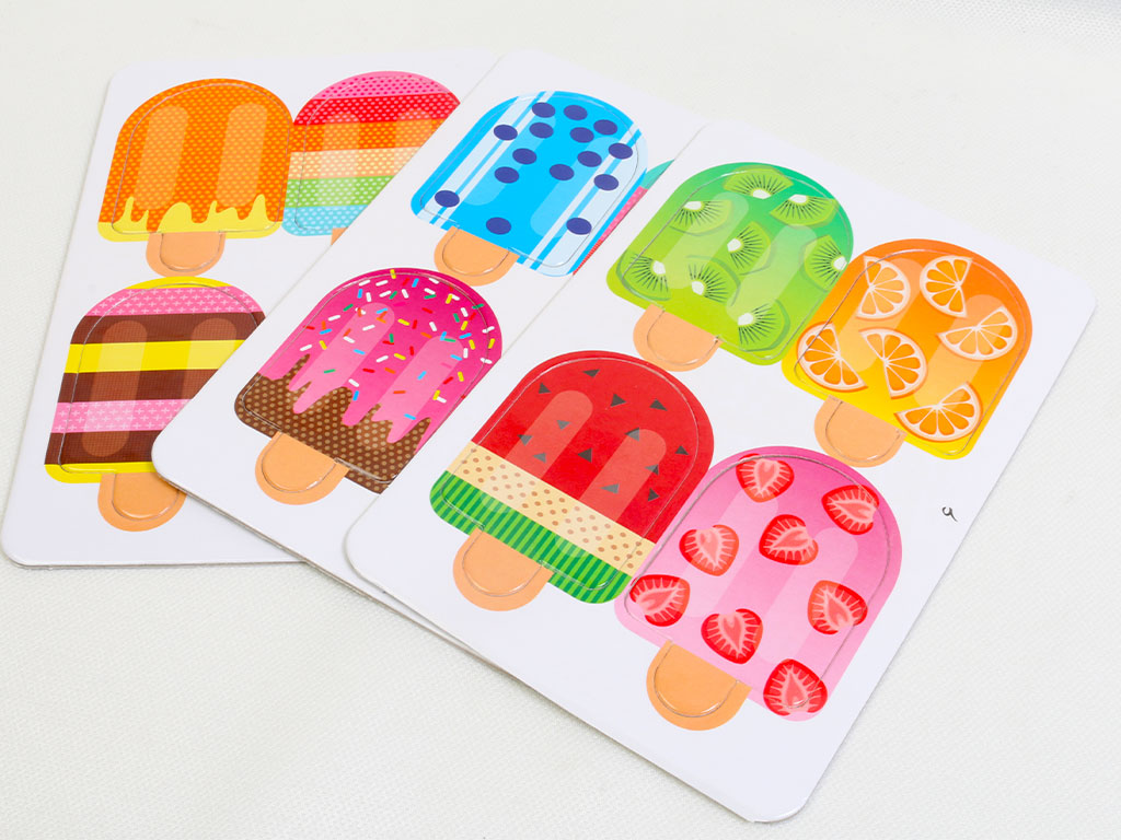 توجه داشته باشید هنگام جدا کردن بستنی ها از صفحه اصلی، جهت حفظ کیفیت لبه ی کارت ها، آنها را از سمت پشت صفحه خارج کنید.