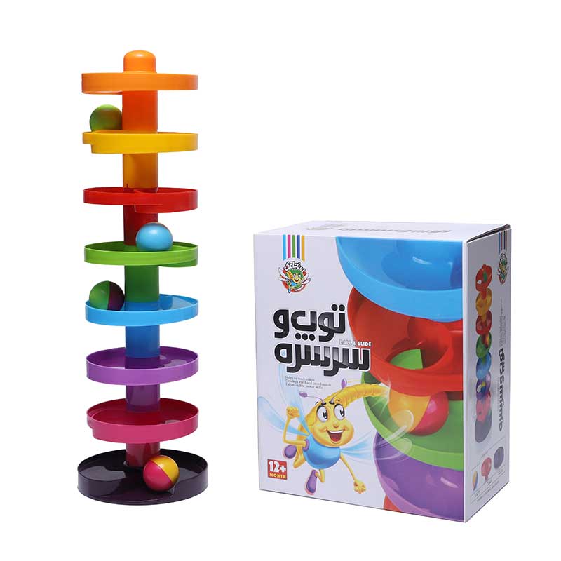 در اسباب بازی آموزشی توپ و سرسره کودک با قرار دادن توپ در بالای سرسره مسیری را که این توپ طی می‌کند، مرحله به مرحله دنبال می‌کند تا به پایین برسد . کودک با مشاهده این فرایند به کشف قوانین جهان پیرامون خود می‌پردازد و دوست دارد بارها و بارها این آزمایش را انجام دهد. توپ و سرسره از 8 قطعه که روی هم سوار می‌شوند و چهار توپ رنگی صدا دار تشکیل شده است.جنس این اسباب بازی از پلاستیک درجه یک بوده و از کیفیت بسیار خوبی برخوردار است.