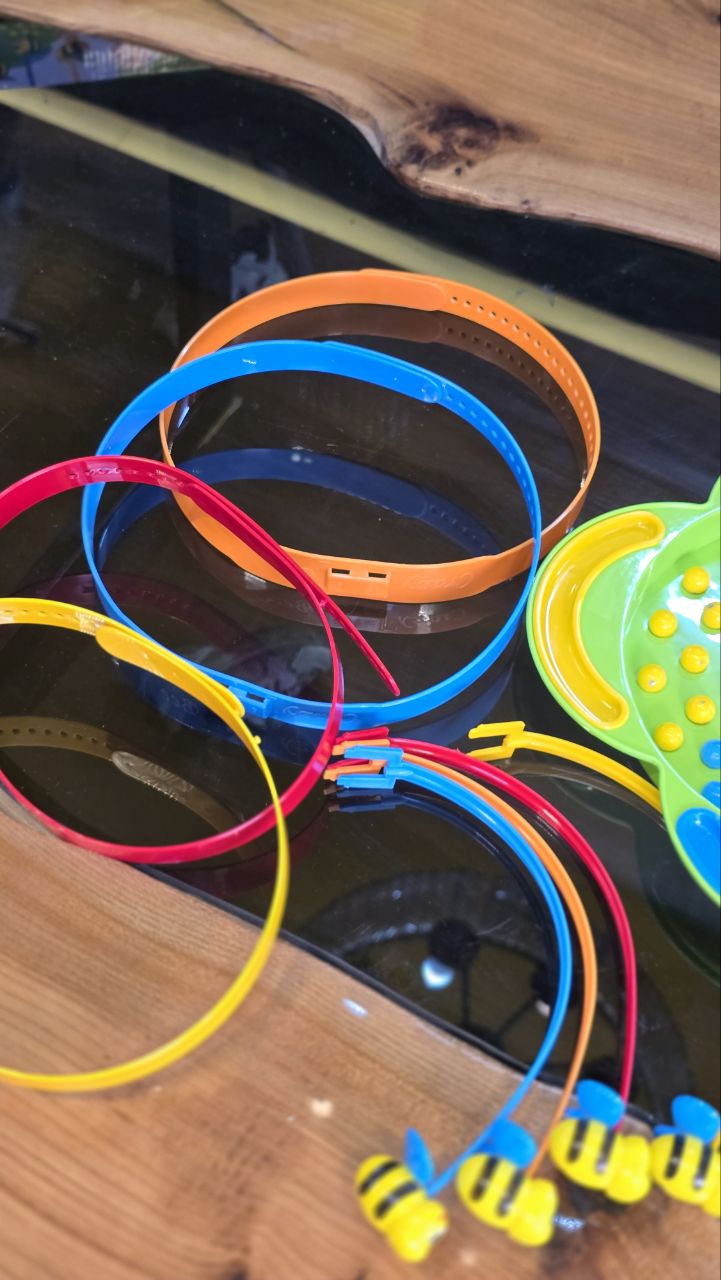 بازی فکری زنبور دیوانه crazy bee یک بازی خانوادگی جذاب و هیجان انگیز برای دو تا 4 نفر که قدرت استدلال و دقت و تمرکز بازیکن هارو افزایش میده. این بازی گروهی جذاب شامل 4 عدد هدبند، 4 عدد زنبور آهنربایی، یک صفحه ی پایه و تعدادی مهره ی رنگی است.