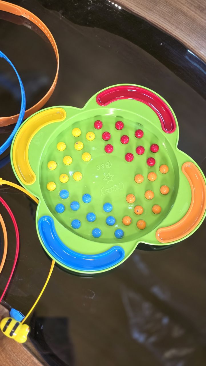بازی فکری زنبور دیوانه (Crazy Bee) یک بازی هیجانی با سرعت عمل بالا برای 2 تا 4 بازیکن است. یک هدبند زنبور عسل را بردارید و بدون استفاده از دست، توپ های مغناطیسی را بردارید! ببینید چه کسی همه توپهای رنگی خود را اول جمع میکند، یا برای جمعآوری هرچه بیشتر توپها مسابقه دهید تا زمانی که همه توپها از صفحه بازی خارج شوند.