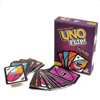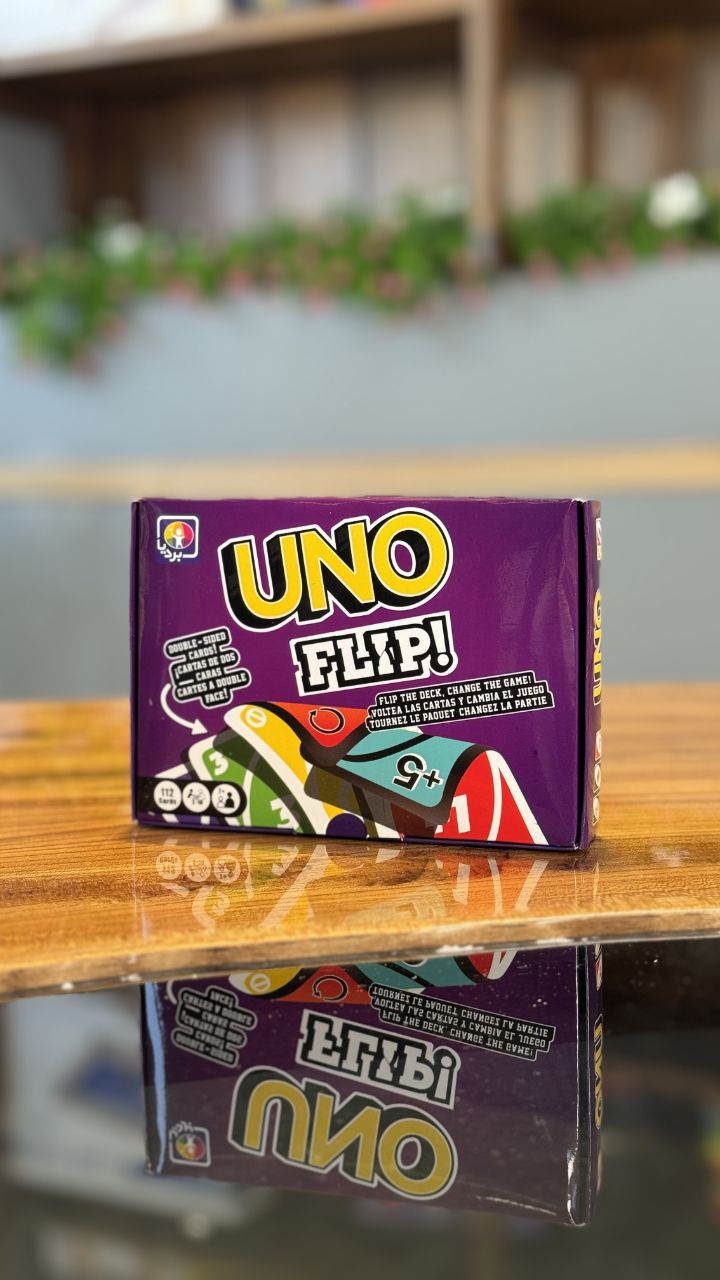 “اونو: فلیپ!”، مثل “اونو”ی کلاسیک بازی میشه ولی یه فرق کوچولو با اون داره: کارتهاش “دو رو” هستن؛ یعنی یه رویِ “روشن” دارن و یه رویِ “تیره”. شما بازی رو با کارتهای روشن شروع میکنین ولی هر وقت که یکی از بازیکنها، یه کارت “فلیپ” (چرخش) بازی کنه، هرچی کارت تو بازی و تو “دست” بازیکنها هست، پُشتوُرو میشه و بازی، با کارتهای تیره ادامه پیدا میکنه! کارتهای تیره، عملیاتهای متفاوت و جریمههای سفتوسختتری دارن! بازی، با کارتهای تیره ادامه پیدا میکنه تا این که یه نفر، یه کارت “فلیپ” (چرخش) دیگه بازی کنه و دوباره همهی کارتها رو به طرفِ روشنشون برگردونه! خلاصه که با همین فرمون میرین جلو تا این که یکی از بازیکنها، “دستِ”ش رو خالی کنه و “دورِ” بازی به پایان برسه…
