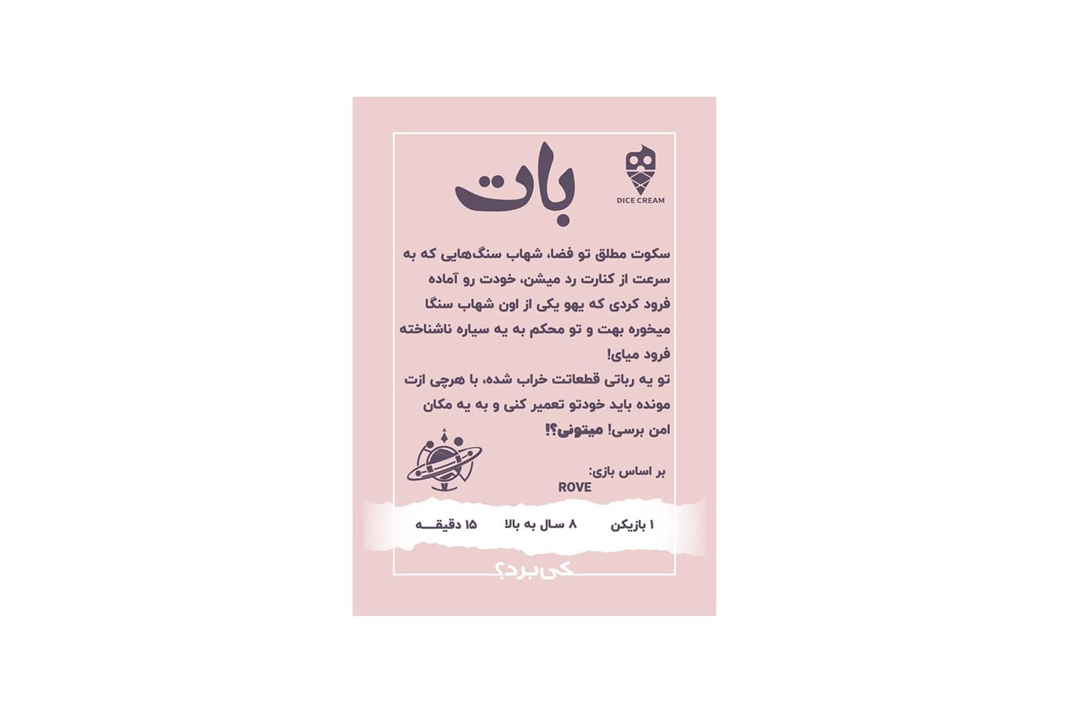 بازی فکری بات ، یک بازی کارتی یک نفره از سری بازیهای مینی دایس است که برگردانی از بازی خارجی Rove میباشد. این بازی برای افراد مثبت ۸ سال که به بازی تک نفره علاقه دارند پیشنهاد میشود. هر دور بازی حدود ۱۵ دقیقه طول میکشد.