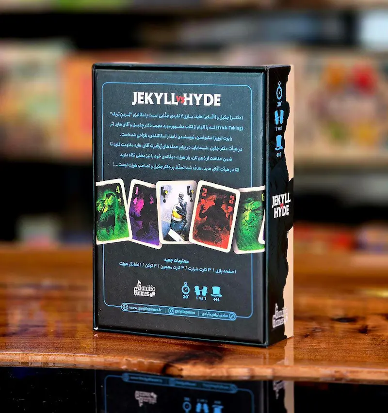 (دکتر) جِکیل و (آقای) هاید، بازی 2 نفرهی جذّابی است با مکانیزم “بُردنِ تریک” (Trick-Taking) که با الهام از کتاب مشهور مورد عجیب دکتر جِکیل و آقای هاید اثر رابرت لوییز استیونسن، نویسندهی نامدار اسکاتلندی، طرّاحی شدهاست. در هیأت دکتر جکیل، شما باید در برابر حملههای پُرقدرت آقای هاید مقاومت کنید تا ضمن حفاظت از ذهنتان، راز هویّت دوگانهی خود را نیز مخفی نگاه دارید امّا در هیأت آقای هاید، هدف شما تسلّط بر دکتر جکیل و تصاحب هویّت اوست…!