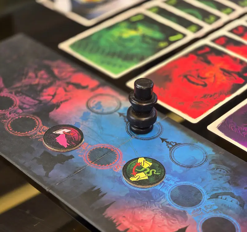 اوّلین رنگِ نمایانشده (رنگِ اوّلین کارت شرارتِ بازیشده) خودبهخود “پایینترین رتبه” را کسب میکند؛ توکن رنگیِ مُتناظر را -بر روی صفحه- در خانهی مُناسب (خانهی سمت چپ) بگذارید. دوّمین رنگ نمایانشده، خانهی وسط را تصاحب کرده و سوّمین رنگ نیز تبدیل به “برترین” رنگِ دورِ جاری میشود. کارتهای معجون، رنگ ندارند و رتبهبندی هم نمیشوند!