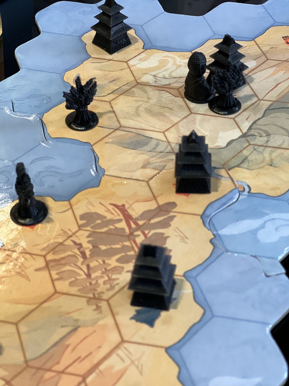 | کاشیهای کاست-ویژه | شامل کاشیهای بودا، برنج و قلعه با ارزشهای عددی مختلف. این کاشیها فقط بر روی مهرههای همنوع خود تأثیر میگذارند. (مثلاً کاشی بودا فقط برای تصاحب مجسمه بودا نفوذ ایجاد میکند). اینها کاشیهای “معمولی” هستند و در هر نوبت فقط یکی از آنها را میتوان بازی کرد. | 2 |