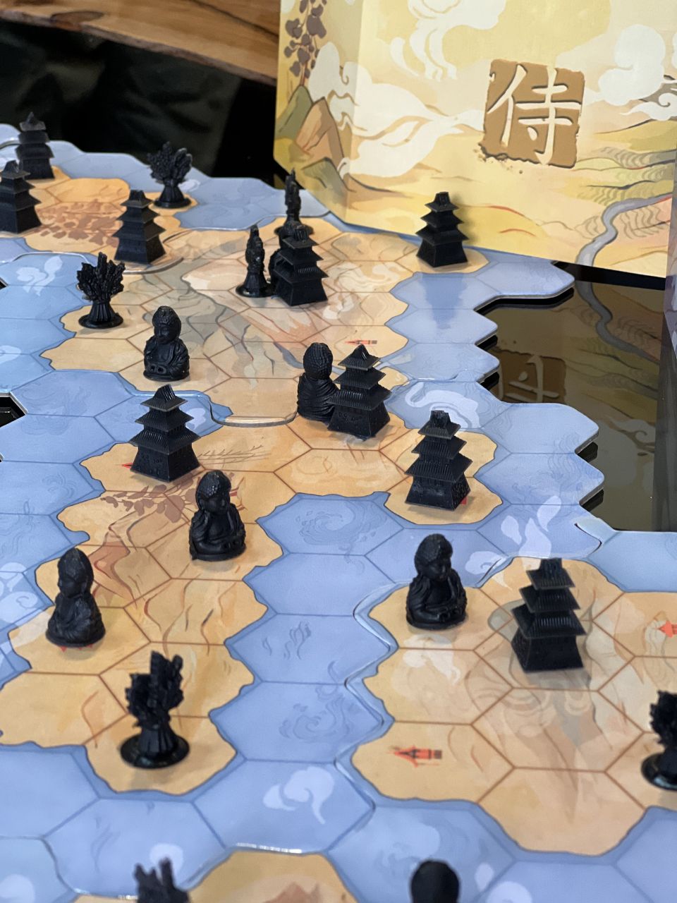 بازی «سامورایی» یک نمونه درخشان از طراحی انتزاعی-موضوعی (Abstract-Thematic) است. در حالی که شما در عمل کاشیهای شمارهدار را روی صفحه قرار میدهید، سیستم امتیازدهی و اهداف بازی به گونهای طراحی شدهاند که شما واقعاً حس یک فرمانده را دارید که بین تقویت ارتش، جلب رضایت راهبان و تأمین غذای مردم، دست به انتخابهای سخت و استراتژیک میزند.