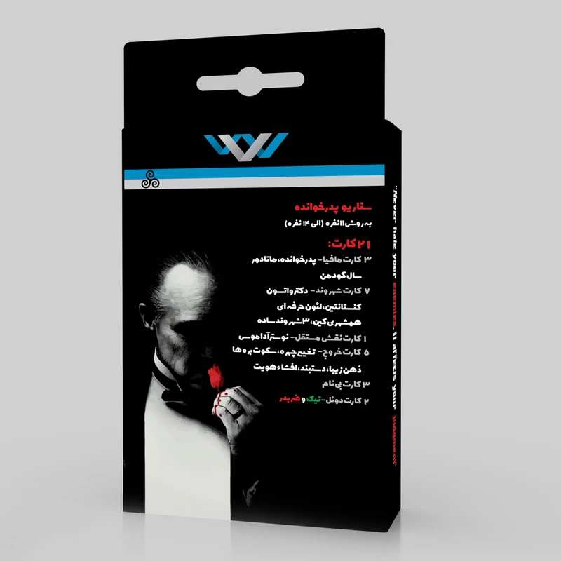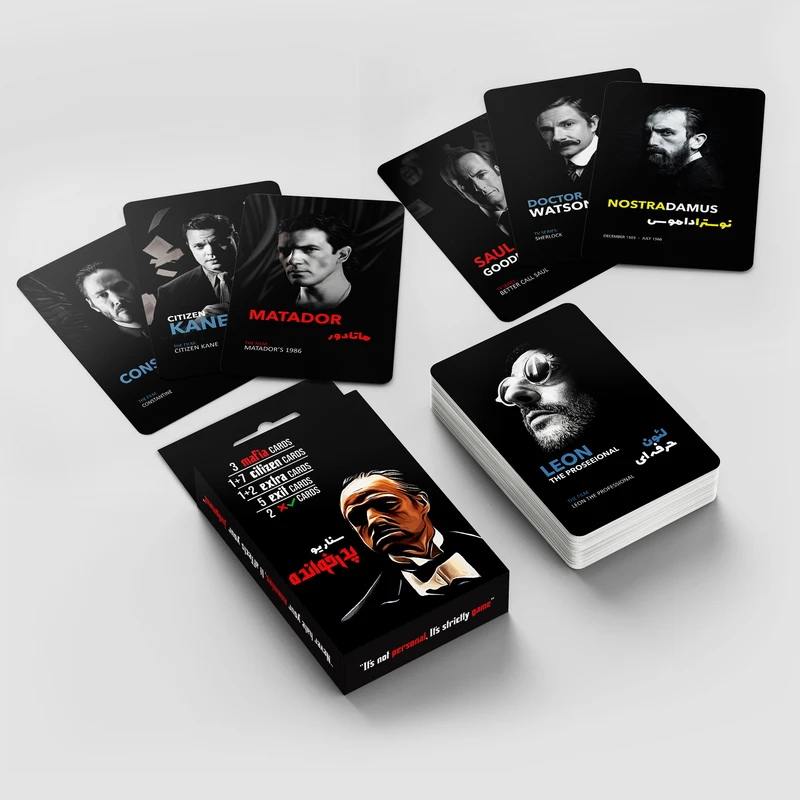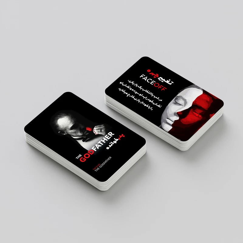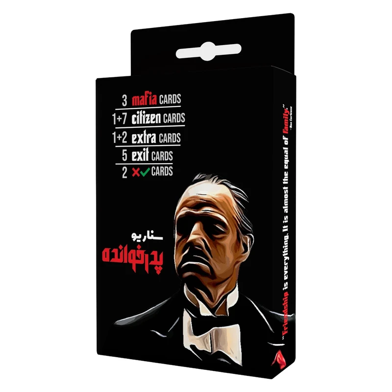 بازی فکری مدل کارت مافیا سناریو پدرخوانده این بازی فکری هم دقیقا شبیه به بازی خود مافیا طراحی شده و کارتهای مختلفی دارد که با استفاده از آنها میتوانید بازی را آغاز کنید. با شروع بازی شما یکی از نقشهای کارتها را دریافت کرده و در طول بازی هم باید همان را اجرا کنید.بازی فکری مدل کارت مافیا سناریو پدرخوانده میتواند در جمع دوستان و حتی فامیل بسیار سرگرم کننده باشد.