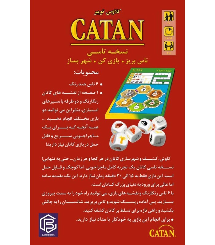 با ۶ تاس رنگارنگ و نقشه های بازی، میتوانید راه خود را بسمت پیروزی بسازید. پس آماده ریسک شوید و تاس بریزید. شانستان را به چالش بکشید و راهی تازه برای تسلط بر کاتان  کشف کنید.