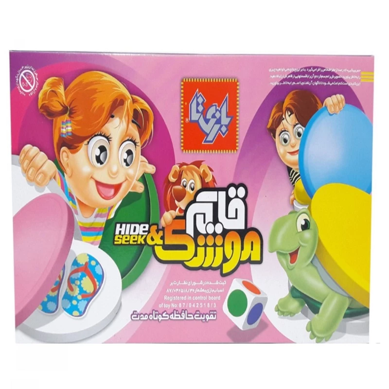 قایم موشک شامل ۳۰ پولک فومی، ۶ تشتک رنگی و یک عدد تاس است. ابتدا ۳۰ کارت تصویر را روی زمین پخش می‌کنیم؛ سپس طوری که همه‌ی بازیکنان ببینند، تشتک‌های رنگی را روی ۶ تصویر قرار می‌دهیم. هر یک از بازیکنان به نوبت تاس می‌اندازد و با توجه به رنگ تاس باید حدس بزند که زیر تشتک پلاستیکی همان رنگ چه تصویری قرار دارد.