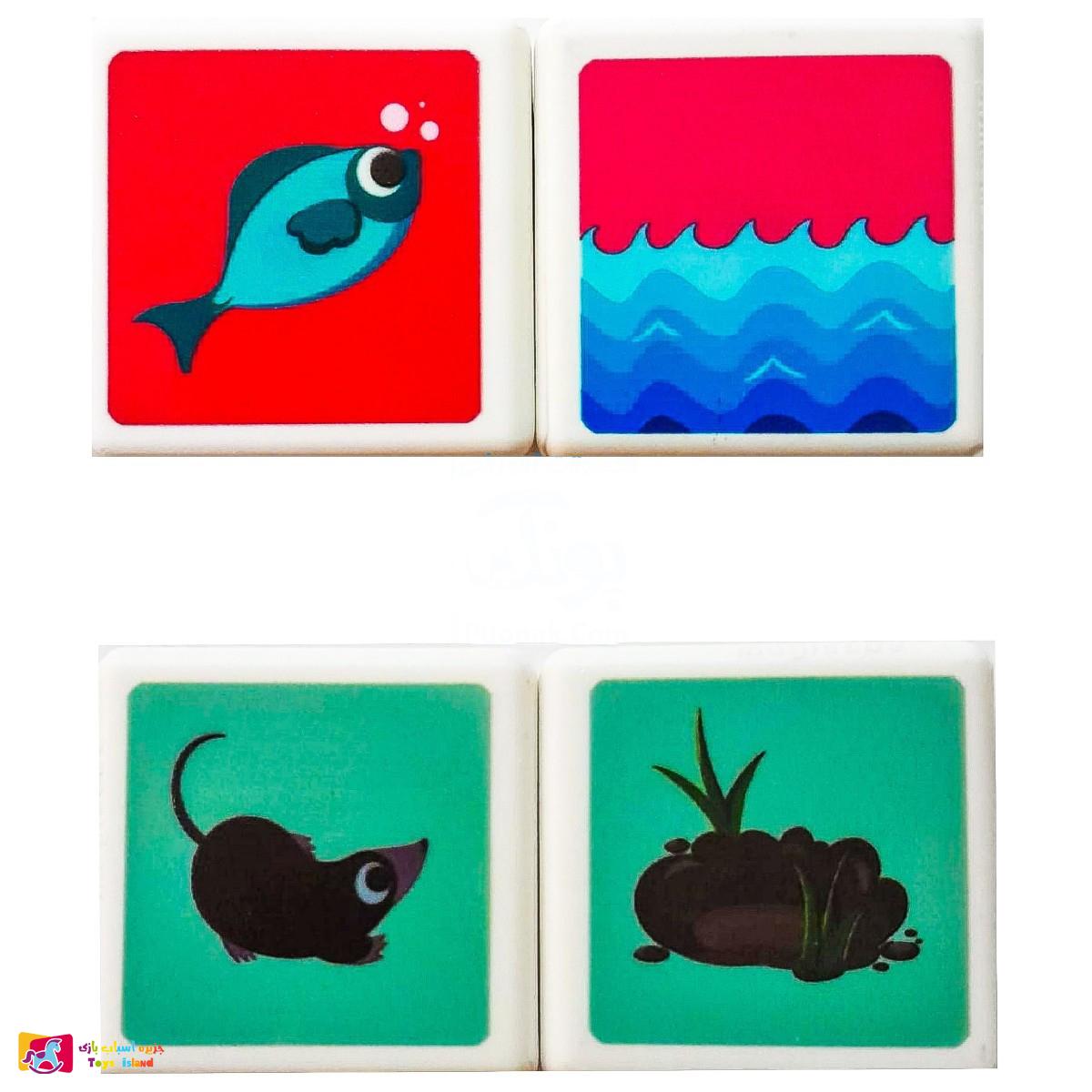 داخل هر بسته دو عدد مکعب تصویری با کیفیت وجود دارد . که روی هر وجه یکی از مکعب ها تصویر حیوانات و روی هر وجه مکعب دیگیری مکان زندگی آنها چاپ شده است. کودک با چرخاندن این مکعب ها باید مکان زندگی هر حیوان را پیدا کند