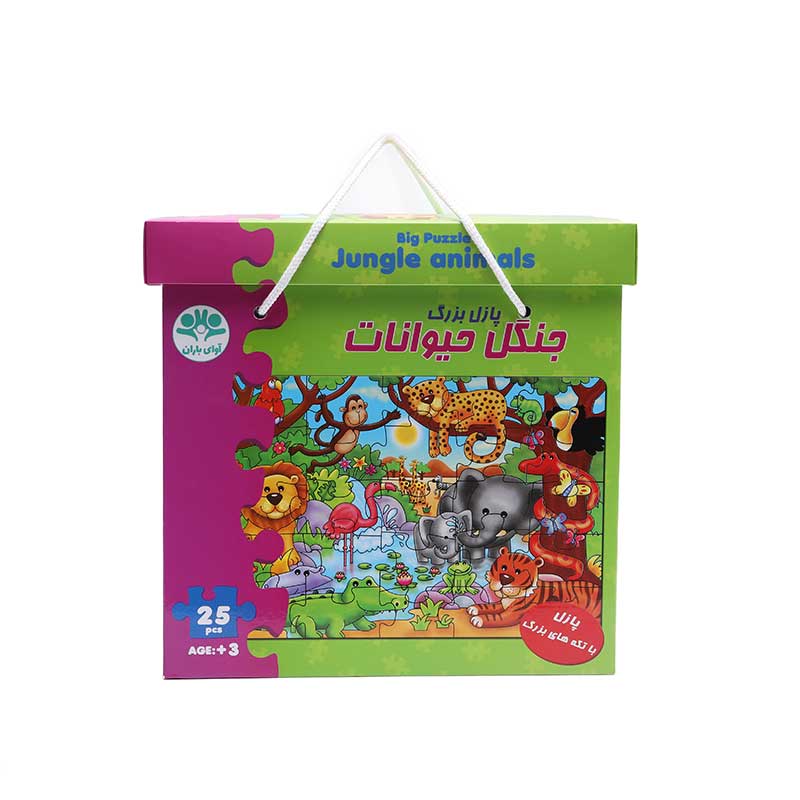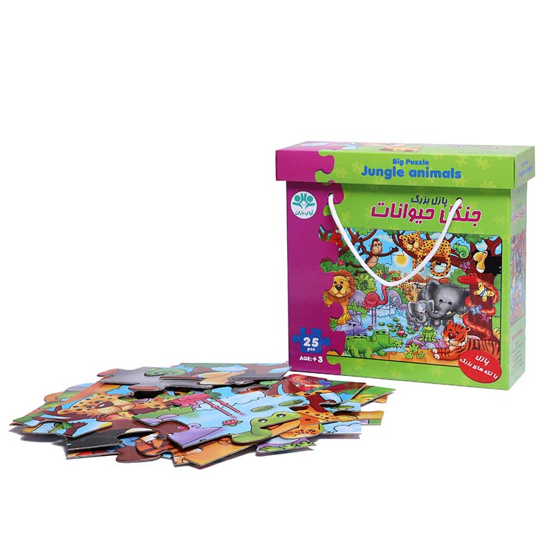 پازل بزرگ جنگل از 25 قطعه که برروی هر یک از قطعات بخشی از تصویر یکی از حیوانات و یا اجزایی که در جنگل وجود دارد تشکیل شده است. کودک می بایستی با توجه به تصویری که قرار است بوجود آورد هر تکه پازل را در جای اصلی خودش قرار دهد. قطعاتی که دراین پازل انتخاب شده است تقریبا تمامی آن چیزی است که در جنگل وجود دارد. کودک با انجام این بازی علاوه بر تقویت قدرت تطبیق یک قطعه با قطعات دیگر و همچنین جور کردن و هماهنگ کردن یک قطعه با کل تصویر به شناخت خوبی از جنگل و حیواناتی که در آن زندگی می کنند دست پیدا خواهد کرد. دریافت اطلاعات از اجزای تشکیل دهنده جنگل واقعی از دیگر اهدافی است که کودک با انجام این بازی به آن دست پیدا خواهد کرد. این محصول برای گروه سنی 3 سال به بالا مناسب است.