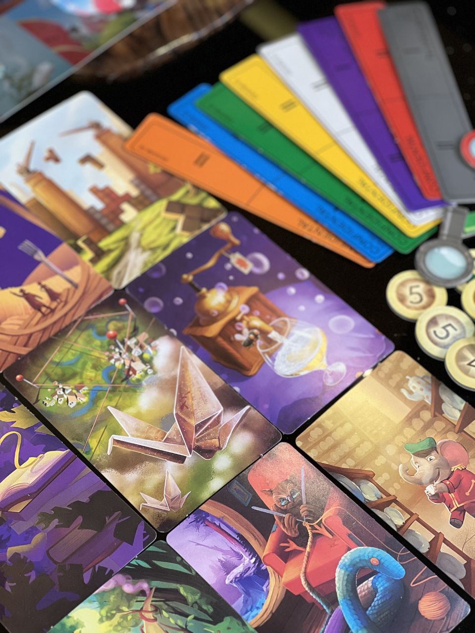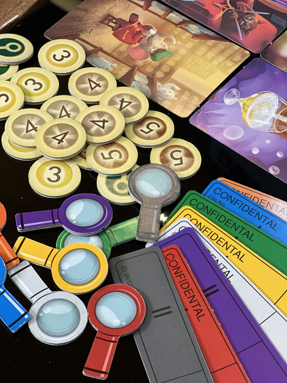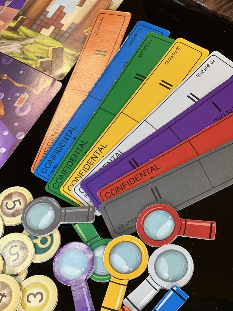 2. هر بازیکن یک نشانگر رنگی و یک ذره‌بین چوبی همرنگ آن را برمی‌دارد.