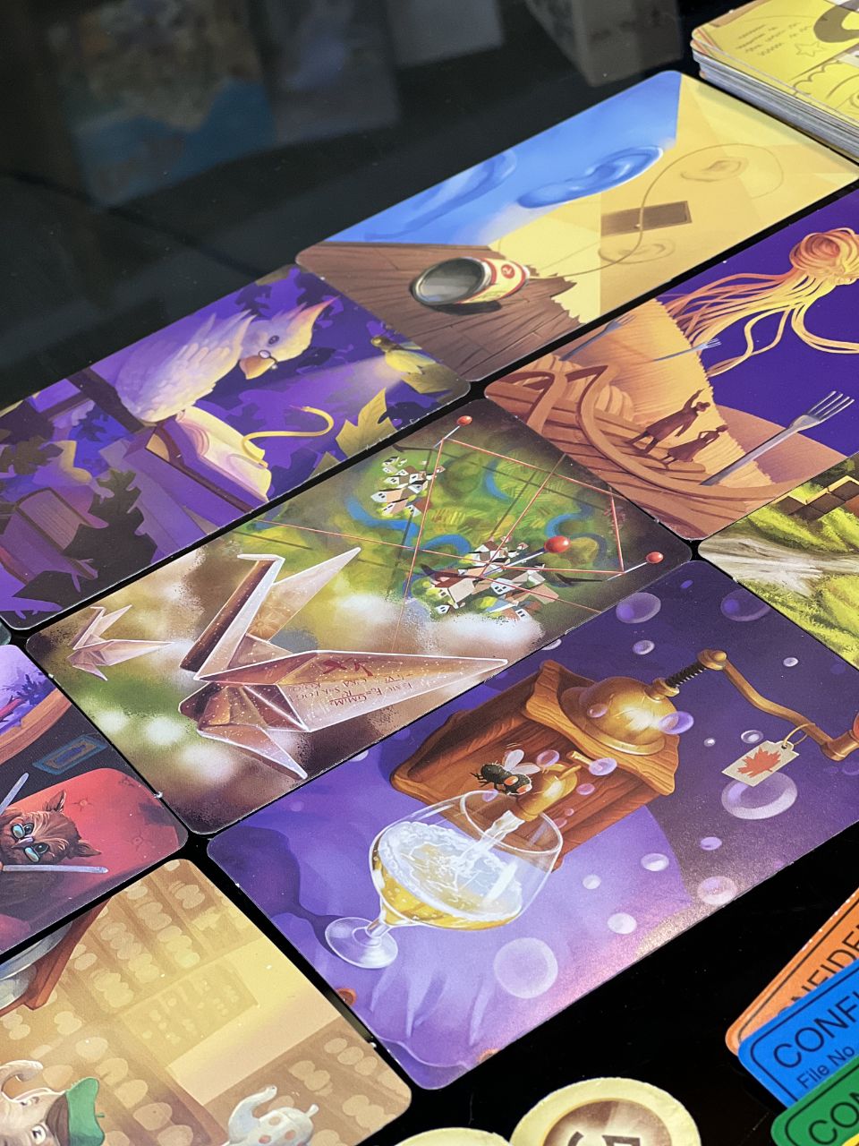 شاید در نگاه اول، کارت‌های بازی شبیه به بازی محبوب «دیکسیت» (Dixit) به نظر برسند، و این مقایسه بی‌راه نیست. هر دو بازی از هنر انتزاعی و رویاگونه برای تحریک خلاقیت بازیکنان استفاده می‌کنند. اما در «باشگاه کارآگاهان»، این هنر صرفاً جنبه زیبایی‌شناختی ندارد، بلکه یک مکانیزم بنیادین و حیاتی در گیم‌پلی است.