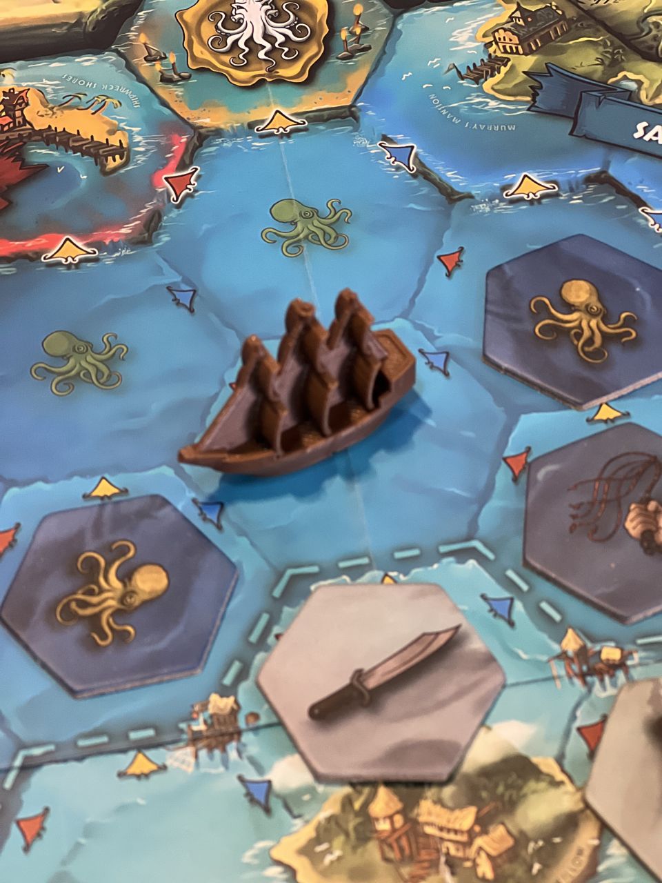 Resistance و بازیهای حماسی و بسیار طولانی مانند Battlestar Galactica. جالب است بدانید که تم دزدان دریایی و سفر دریایی پیش از مکانیکهای بازی شکل گرفت و تمام قوانین و مکانیزمها برای جان بخشیدن به این اتمسفر طراحی شدند.