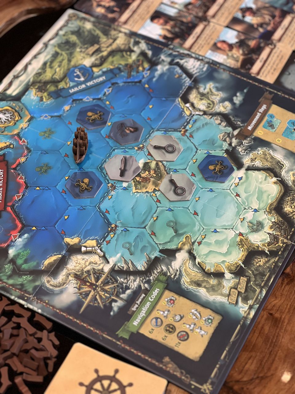 پس از قرار دادن کشتی در نقطهی شروع، توکنهای رویداد روی نقشه چیده میشوند. سپس نقشهای مخفی (ملوان، دزد دریایی یا رهبر فرقه) درون کیسههای پارچهای قرار گرفته و به صورت تصادفی بین بازیکنان توزیع میشود. در نهایت، به هر بازیکن یک کارت شخصیت با یک قابلیت ویژه و یکبار مصرف داده میشود و بازیکنی که کارت «کاپیتان» را دریافت کند، بازی را آغاز خواهد کرد.