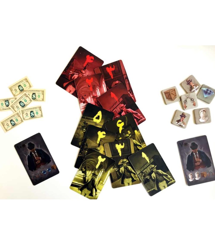 2- به هر بازیکن شش کارت انتخاب لوکیشن از یک رنگ دلخواه، یک توکن سکوت ، یک توکن مذاکره ، یک توکن اسلحه و یک دلار داده می شود.