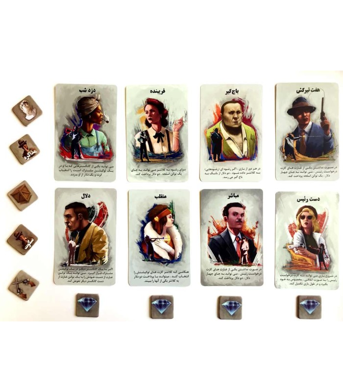 3- کارت های شخصیت گانگستر را بر زده و به هر نفر یک کارت شخصیت گانگستر به صورت اتفاقی داده می شود، سپس باقی کارت های شخصیت گانگستر از بازی کنار می روند.