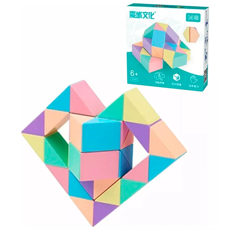 روبیک موفنگ جیااوشی مدل ماری ۳۶ قطعه مویو مدل ماکارون MoYu Magic Snake 36 pcs Macaron تجربه‌ای متفاوت از خلاقیت با چرخش ۳۶۰ درجه در ۴ مرحله و رنگ‌های ملایم ماکارونی ماری ۳۶ قطعه MoYu مدل Macaron یک اسباب‌بازی فکری و مهارتی پیشرفته است که با طراحی منحصربه‌فرد، رنگ‌های چشم‌نواز ماکارونی و قابلیت شکل‌پذیری گسترده، انتخابی ایده‌آل برای تقویت خلاقیت و تجسم فضایی در تمام سنین محسوب می‌شود.