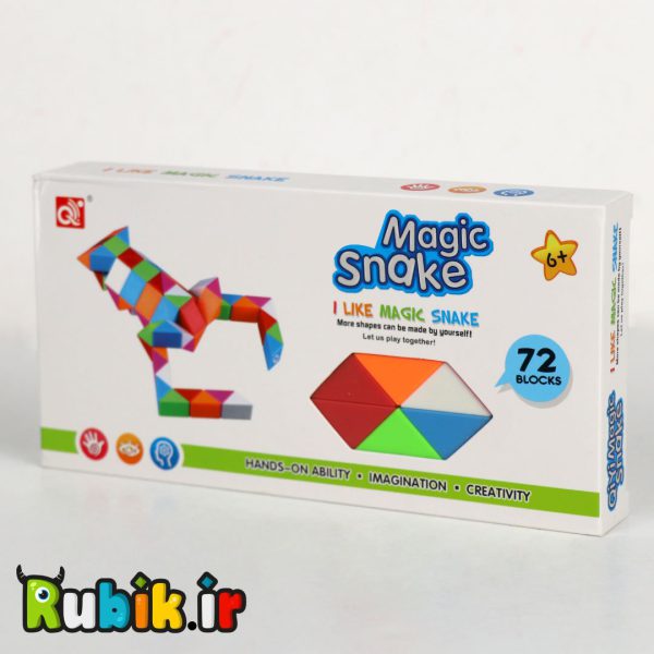 روبیک ماری 72 قطعه کای وای یک روبیک ماری با کیفیت و باثبات است. این روبیک 72 قطعه مستقل دارد که هر کدام در 4 جهت قابل چرخش هستند. این نکته باعث می شود بتوان این مار را به انواع و اقسام اشکال تغییر حالت داد. اشکالی مثل پرنده، گربه، قلب، زرافه، قورباغه، اردک، گل و …با اندکی تمرین و استفاده از راهنماهای آموزشی قابل ساختن هستند که باعث می شود این روبیک در رشد خلاقیت و هوش بسیار موثر باشد.