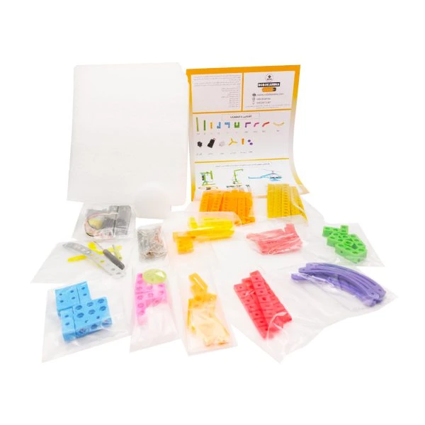 این محصول دارای قطعات الکترونیک مانند، آرمیچر، جاباتری، کلید الکتریکی و سازه های رباتیک و قطعات مکانیکی مانند رابط موتور به مته، رابط موتور به سازه، لینک های اتصال، پیچ و مهره می باشد. هدف این محصول، آشنایی با رباتیک و ساخت سازه های خلاقانه مانند: سلاح جنگی، منجیق، تیر و کمان، هلیکوپتر، هواپیما، دریل برقی، جرثقیل، چرخ و فلک برقی، پنکه، تاب، دوچرخه، آدمک مکانیکی، گریپر و…. می باشد.