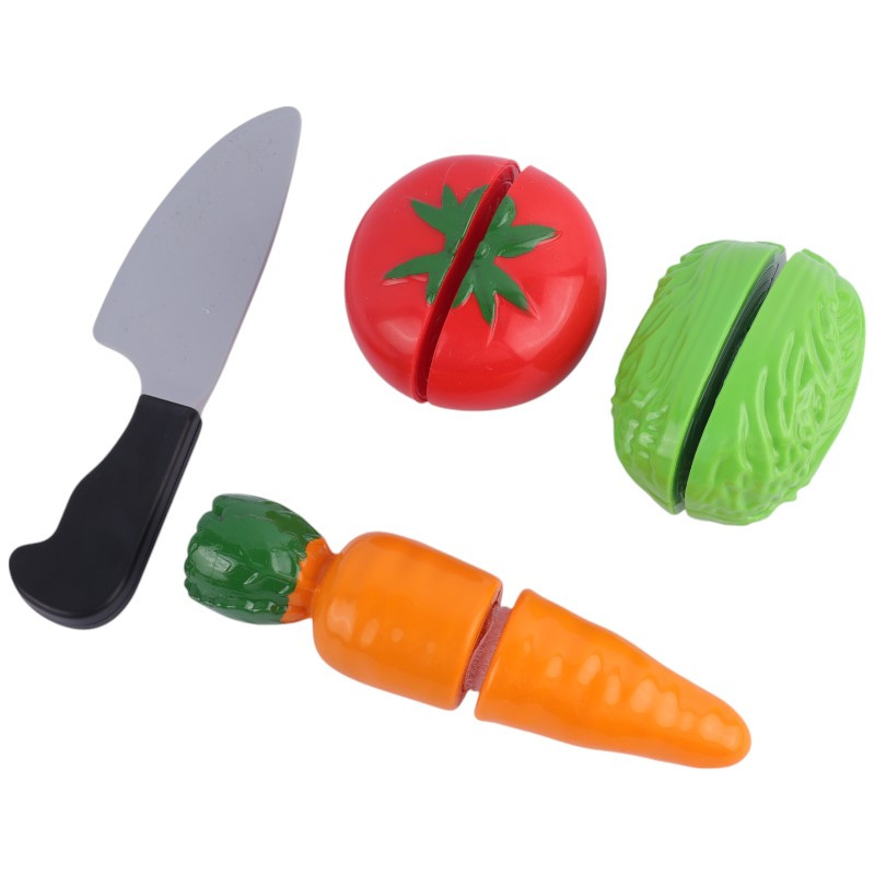 دارای قطعات بازی شامل کاهو، گوجه، هویج و یک عدد چاقو