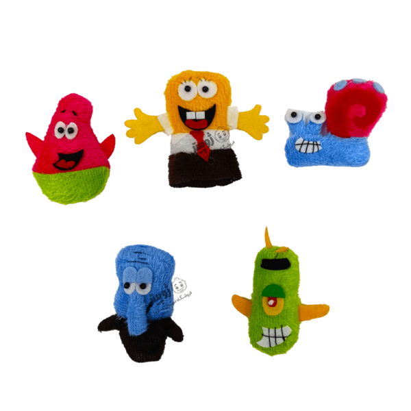 عروسک های انگشتی جذاب و دوست داشتنی با شخصیتهای کارتنی مانند عروسک انگشتی باب اسفنجی که از بهترین پارچه تهیه و تولید شده است.