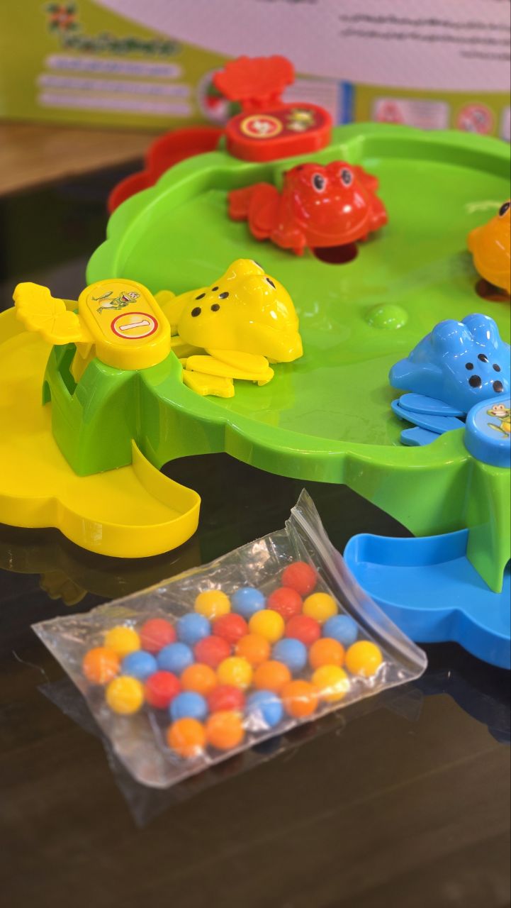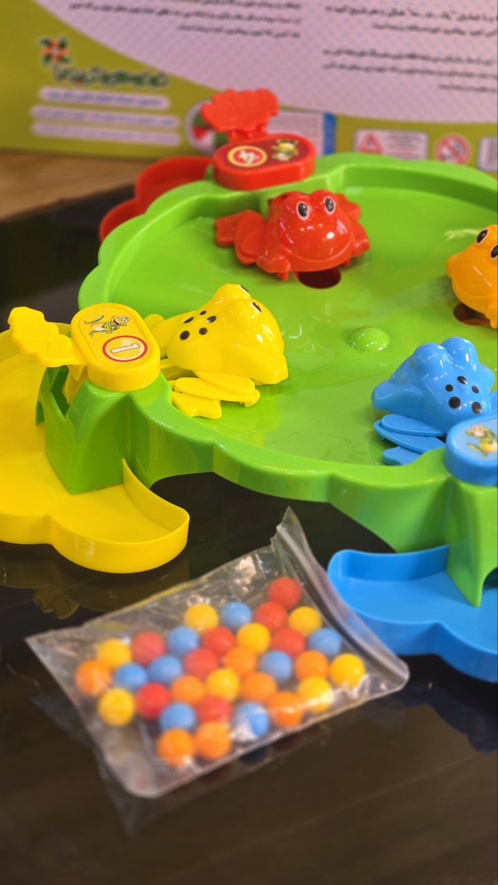 قورباغه های شکمو همون چیزی هست که حسابی می تونه بچه ها رو هیجان زده کنه. چهار تا قورباغه  ی بامزه ی خوشگل که روی یک صفحه ی پلاستیکی به شکل برکه نصب شدن. این قورباغه ها خیلی گرسنشونه و تا توپ های رنگی رو می بینند شیرجه میزنن تا زودتر توپ ها رو بخورن و سیر بشن. این وسط هر قورباغه ای که توپ بیشتری خورده باشه برنده ی بازی میشه.  بازی قورباغه های شکمو 4 نفره یک بازی ایرانی با هدف سرگرمی و ایجاد لحظات شاد و خوش برای بچه هاست که در طول بازی اهداف اموزشی زیادی را پوشش می دهد. مثل افزایش هماهنگی چشم و دست. افزایش سرعت عمل و پرورش هوش هیجانی. این بازی برای گروه سنی 4 سال به بالا مناسب است.