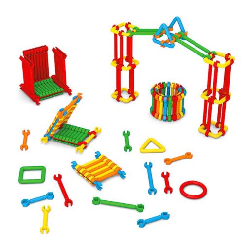 بازیهای خلاقانه برای کودکان، راهی به سوی کشف دنیای پیرامون و یادگیری فکر کردن خارج از چارچوب است این محصول شامل حدود 500 قطعه اشکال مختلف و اتصالات پلاستیکی در اندازهها و رنگهای متفاوت است که کودک میتواند با استفاده از قدرت تخیل و خلاقیت خود بینهایت شکلهای متنوع بسازد.
