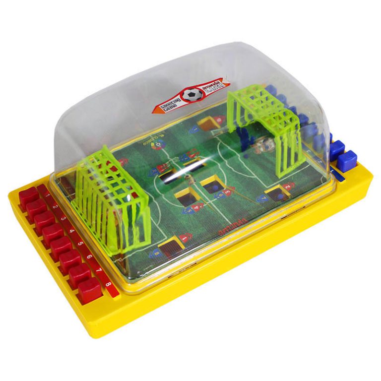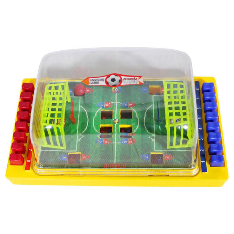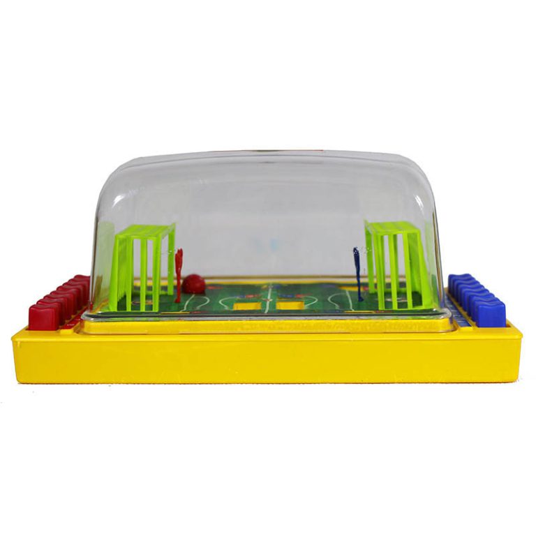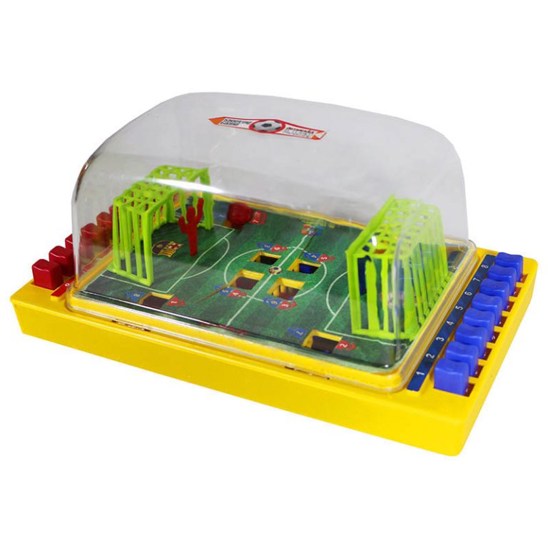 مینی فوتبال شیشه ای یک زمین فوتبال است که دور تا دور آن را فضایی شیشه ای پوشانده که وجود این فضای شیشه ای یکی از مفید ترین ویژگی های این وسیله بازی میباشد زیرا باعث میشود توپ در همان محیط بماند و به مکان هایی خارج از محیط بازی نرود.در دو طرف.قسمت عرض زمین دکمه هایی چیده شده که با فشار دادن آنها توپی را که در زمین قرار دارد را به حرکت در می آورد و به سمت های مختلفی از زمین پرتاب میکند.در این بازی هر تیم باید همه تلاشش را بکند که با سرعت و دقت و به.موقع دکمه های سمت خودش را فشار دهد تا بتواند به تیم مقابل اش گل بزند و برنده بشود. اسباب بازی مینی فوتبال شیشه ای