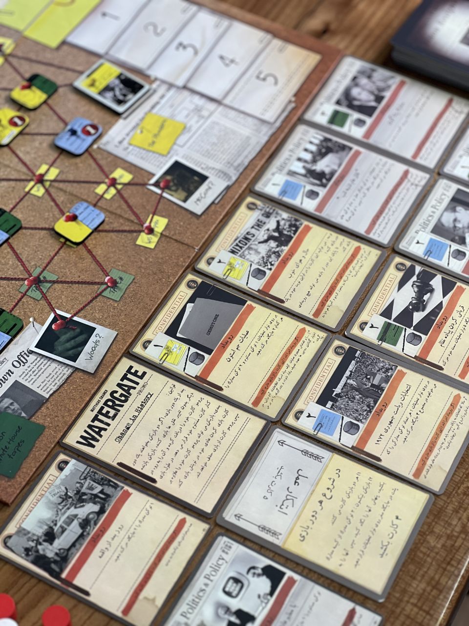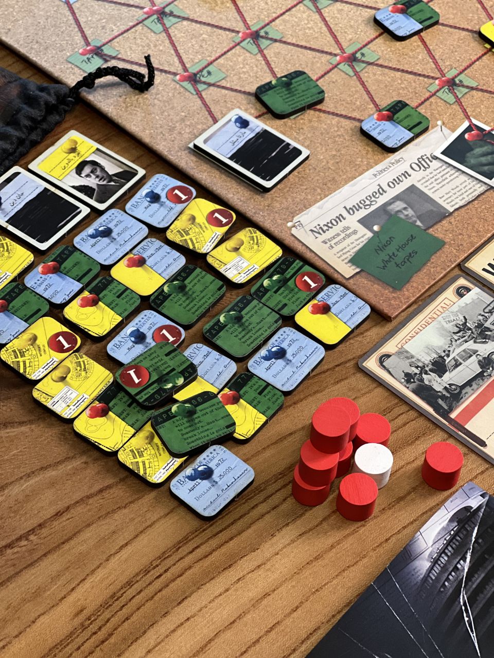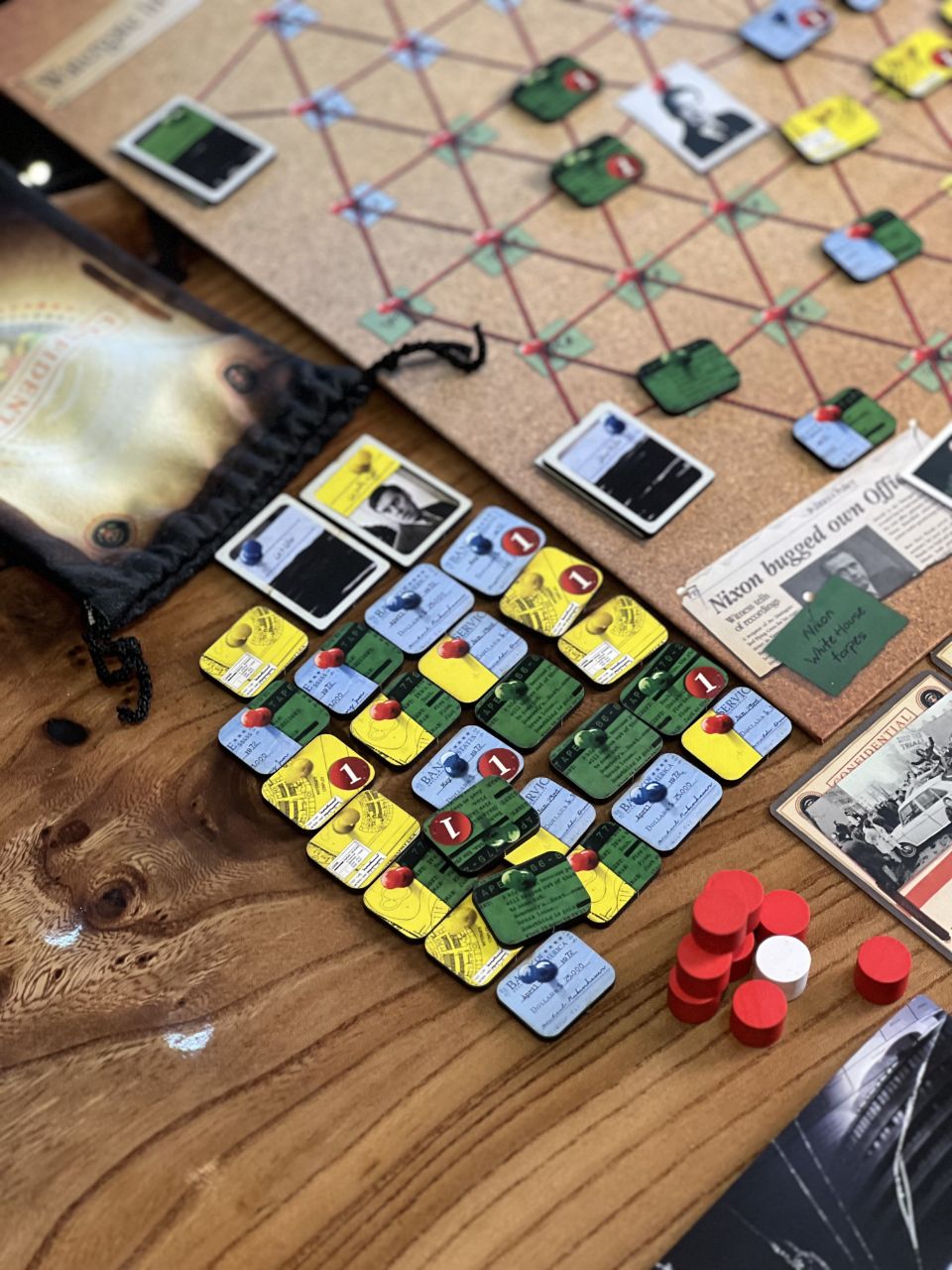 در بازی دو نفره واترگیت ، یک بازیکن نماینده دولت نیکسون است و سعی می کند قبل از پایان بازی استعفا ندهد ، در حالی که بازیکن دیگر نقش یک روزنامهنگار را بر عهده میگیرد و سعی می کند ارتباطات میان نیکسون و برخی از خبره های خود را نشان دهد.