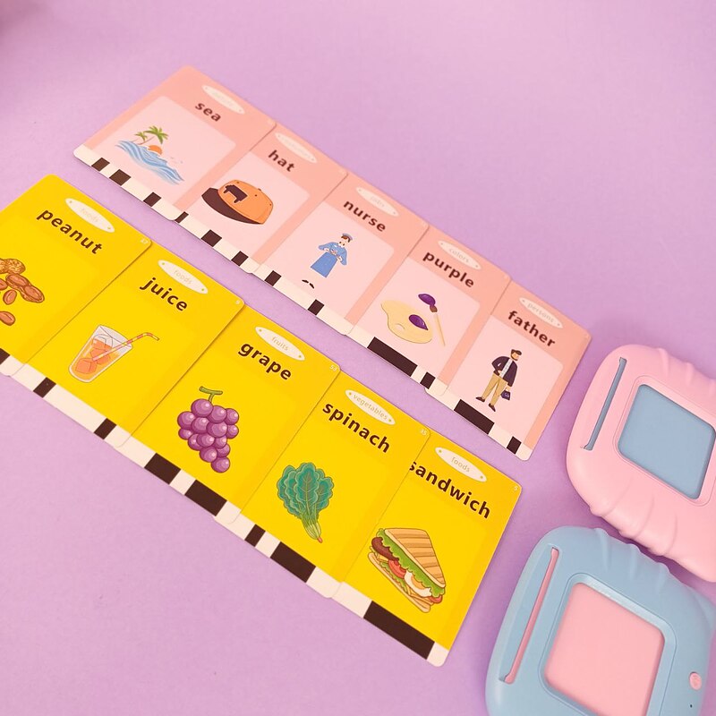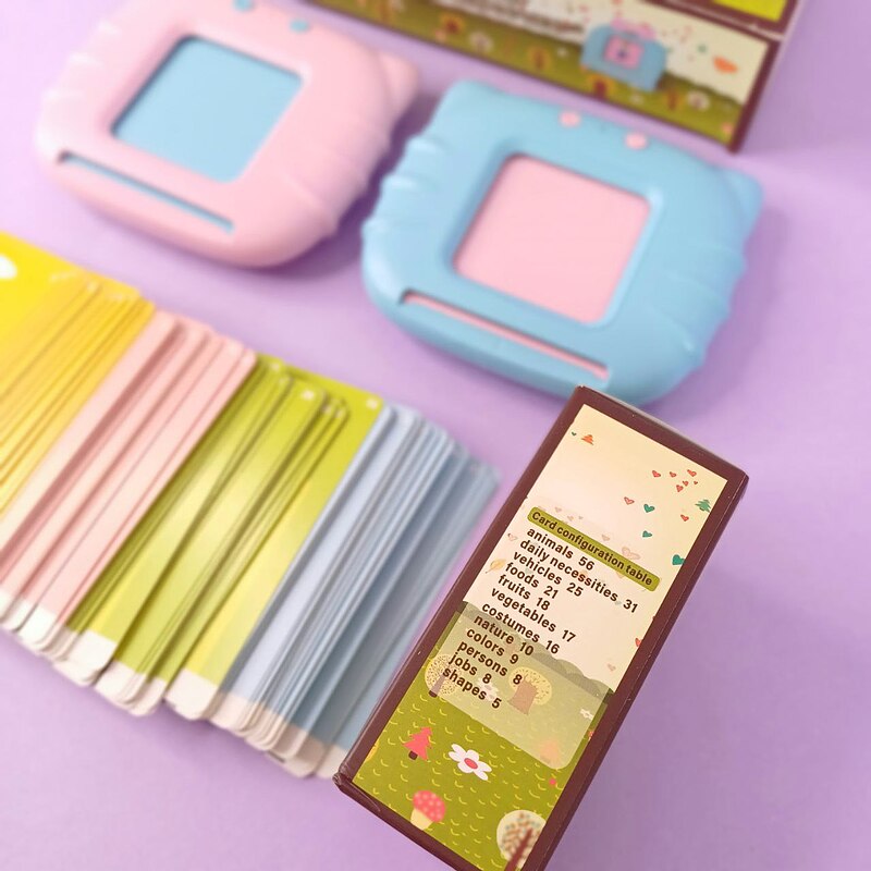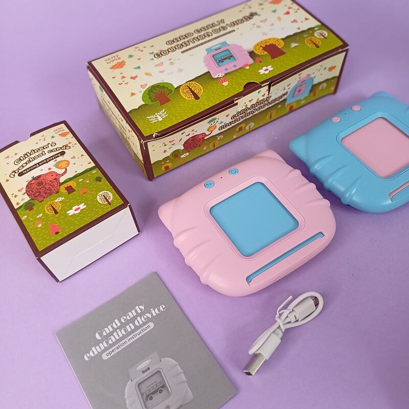 این گجت شامل یک دستگاه پخش صداست که با usb به شارژر متصل می شود و باعث می شود بی نیاز به باطری باشید. و به همراهش تعداد 112 عدد کارت دو طرفه وجود دارد که در هر طرف یک تصویر به همراه اسم آن تصویر کشیده شده است.  کافیست دکمه ی روشن کیت را بزنید و کارت را از شیار وارد اسپیکر کنید. دستگاه ابتدا به زبان انگلیسی سلام می کند و سپس از کودک می خواهد که کارت را وارد دستگاه کند  و بعد نام  انگلیسی و در بعضی کارت ها مانند حیوانات و وسایل نقلیه صدای آن حیوان یا ماشین را پخش میکند. با نگه داشتن دو دکمه ی تنظیم صدا و تکرار به صورت همزمان یک دور کل حروف الفبای انگلیسی با آهنگ پخش میشود.