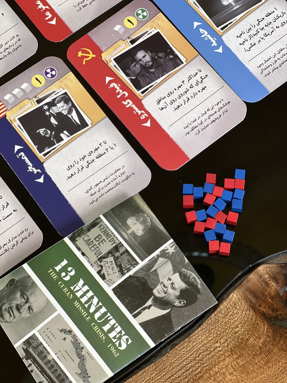 بازی فکری 13 دقیقه بحران موشکی کوبا یک بازی در سبک “میکرو گیم” است. در این بازی دو نفره، یکی نقش رئیسجمهور ایالات متحده و دیگری نقش رهبر شوروی را بر عهده میگیرد. هدف، افزایش نفوذ در مناطق کلیدی جهان با استفاده از کارتهای چندمنظوره است. هر انتخاب شما میتواند تعادل قدرت را تغییر دهد.