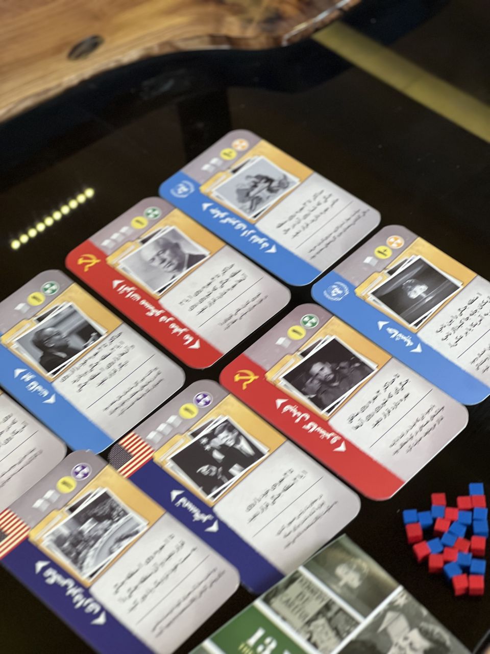 در طول بازی ۵ کارت بازی خواهید کرد و اینگونه بازی را پیش میبرید ، این کارت ها به شما اجازه می دهند تا از مکعب های نفوذ خود استفاده کنید و از کارت ها امتیاز بگیرید.