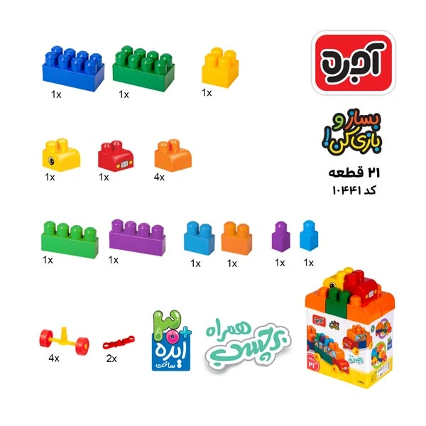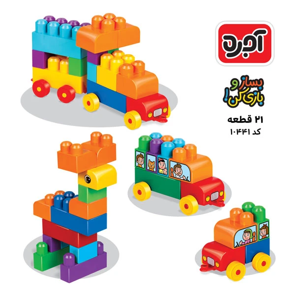 آجره 21 قطعه یک اسباب بازی ساختنی دوست داشتنی برای کودکان است. با وصل کردن قطعات آجره به هم، کودکان میتوانند اشکال متنوع و خلاقانه ای بسازند و از بازی با آن ها بسیارلذت ببرند. در بازی آجره می توانید ربات های بامزه بسازید، ساخت این اشکال به خلاقیت کودک شما و اتصال درست قطعات بستگی دارد.
