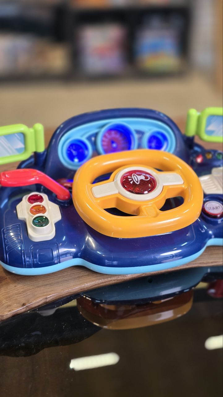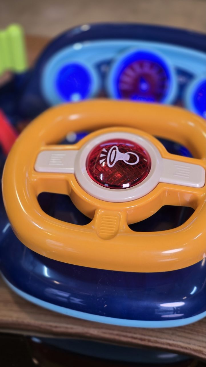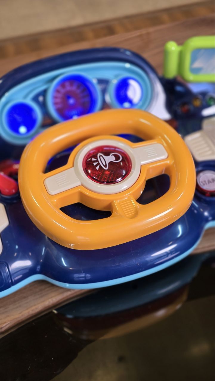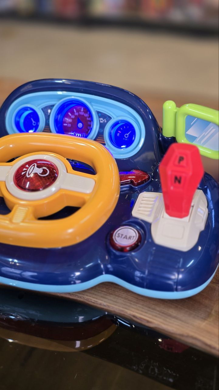 این اسباب بازی فرمان کودک دارای جلوه های صوتی و نوری مختلف است که بر محبوبیتش در میان کودکان افزوده است اسباب بازی فرمان ماشین موزیکال با 3 عدد باطری قلمی کار میکند. کودک می تواند فرمان را بچرخاند، همچنین دکمه ی وسط فرمان را فشار دهد تا صدای بوق پخش شود . راهنمای چپ و راست دارد و زیر داشبور چرخ دارد تا کودک بتواند آن را روی سطح صاف به جلو و عقب بکشد.