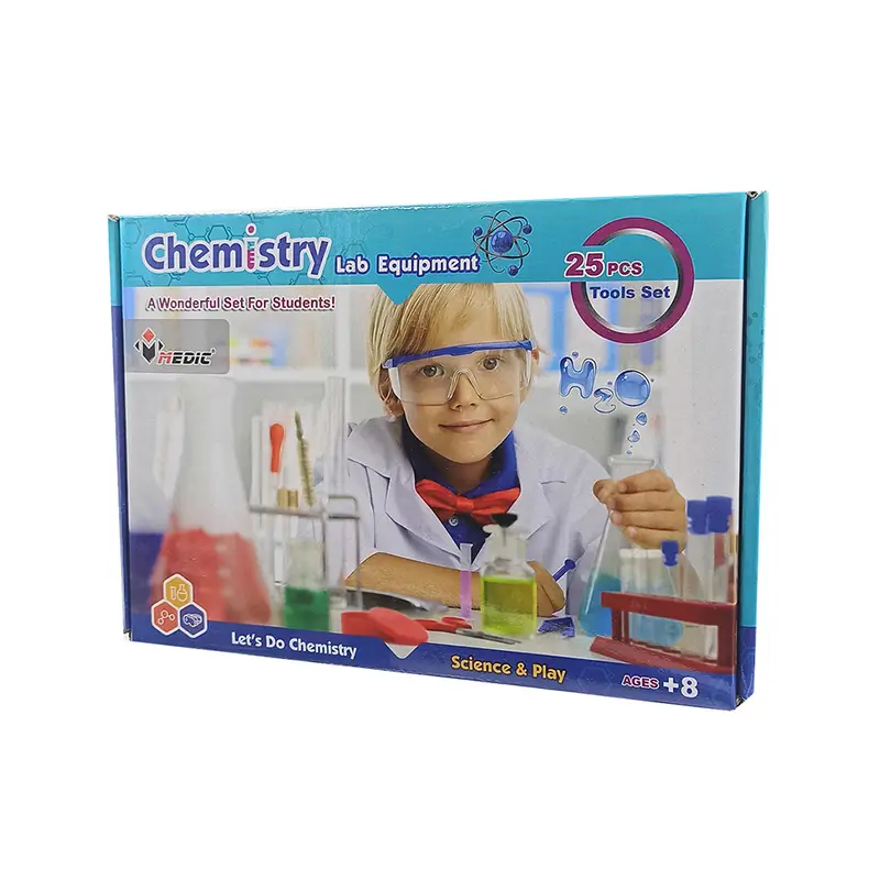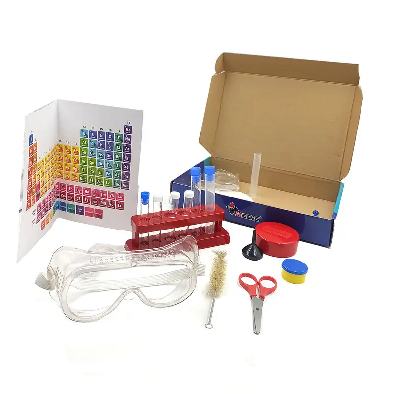 این مجموعه مجهزترین کیت تجهیزات آزمایشگاهی برای دانش آموزان است که شامل عینک ایمنی، لوله آزمایش شیشه ای، لوله آزمایش پلاستیکی، قفسه نگهدارنده لوله آزمایش، لوله استوانه مدرج، لیوان مندرج، ذره بین، قیچی، پنس، قطره چکان، پیمانه اندازه گیری، ظرف کشت سلول و میکروب، قیف، کاغذ صافی، برچسب، ظرف نگهداری نمونه، لام، برس شستشوی لوله و پوستر جدول تناوبی عناصر می باشد