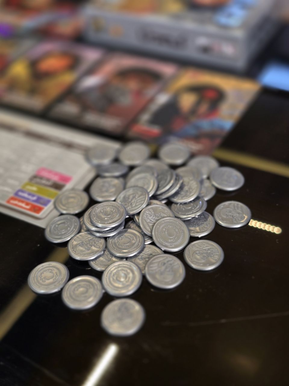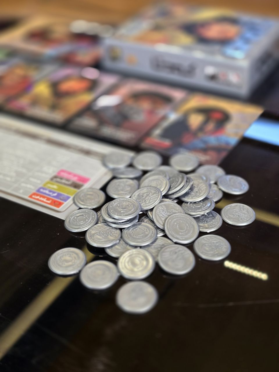به هر بازیکن، 2 سکّه بدهید. سکّه‌های هر بازیکن، همواره باید طوری قرار بگیرند که سایرِ بازیکنان بتوانند ببینند. سکّه‌های باقی‌مانده را به‌عنوانِ “خزانه” در وسطِ محوطه‌ی بازی بگذارید.