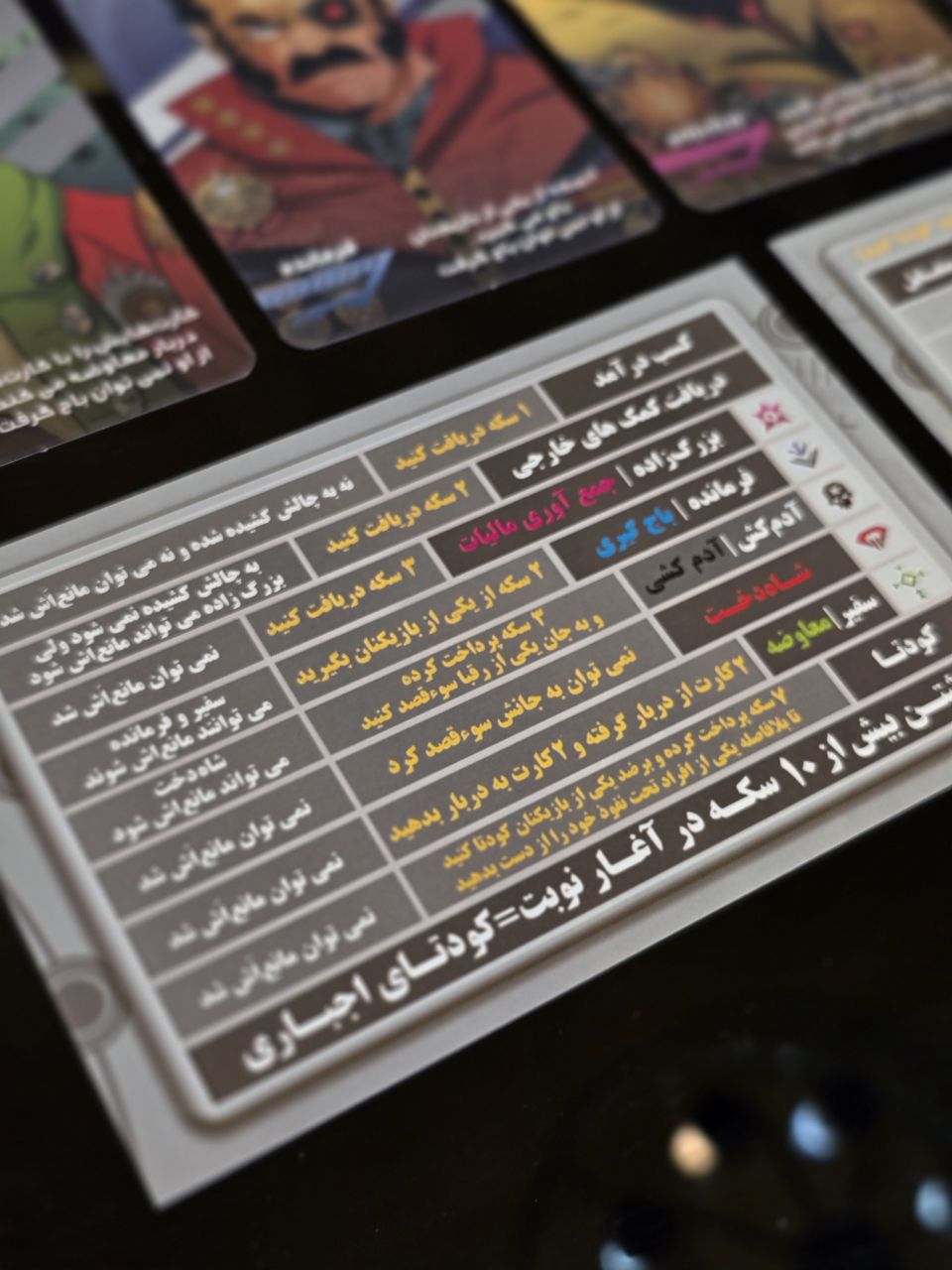 15 کارت شخصيت (بزرگ‌زاده، آدم‌کُش، فرمانده، سفير و شاه‌دُخت؛ از هرکدام، 3 کارت)