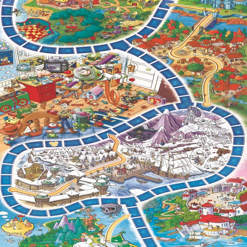 تمامی اعضا باید قبل از ساعت 12، خودشان را به قلعه برسانند. هر بازیکن در نوبت خود اسپینر را میچرخاند که یکی از سه حالت زیر اتفاق میافتد: اگر اسپینر روی عدد ایستاد، مهره را به آن تعداد جلو میبرد. • اگر اسپینر روی تصویر برج ساعت ایستاد، بسته به اینکه عددش 1 یا 2 باشد، عقربه ساعت برج را یک یا دو ساعت جلو میبرد. (این یعنی از زمان کم میشود زیرا شما باید قبل از ساعت 12 به قلعه برسید.) • اگر اسپینر روی تصویر میکی موس ایستاد، یعنی زمان جستجو است.