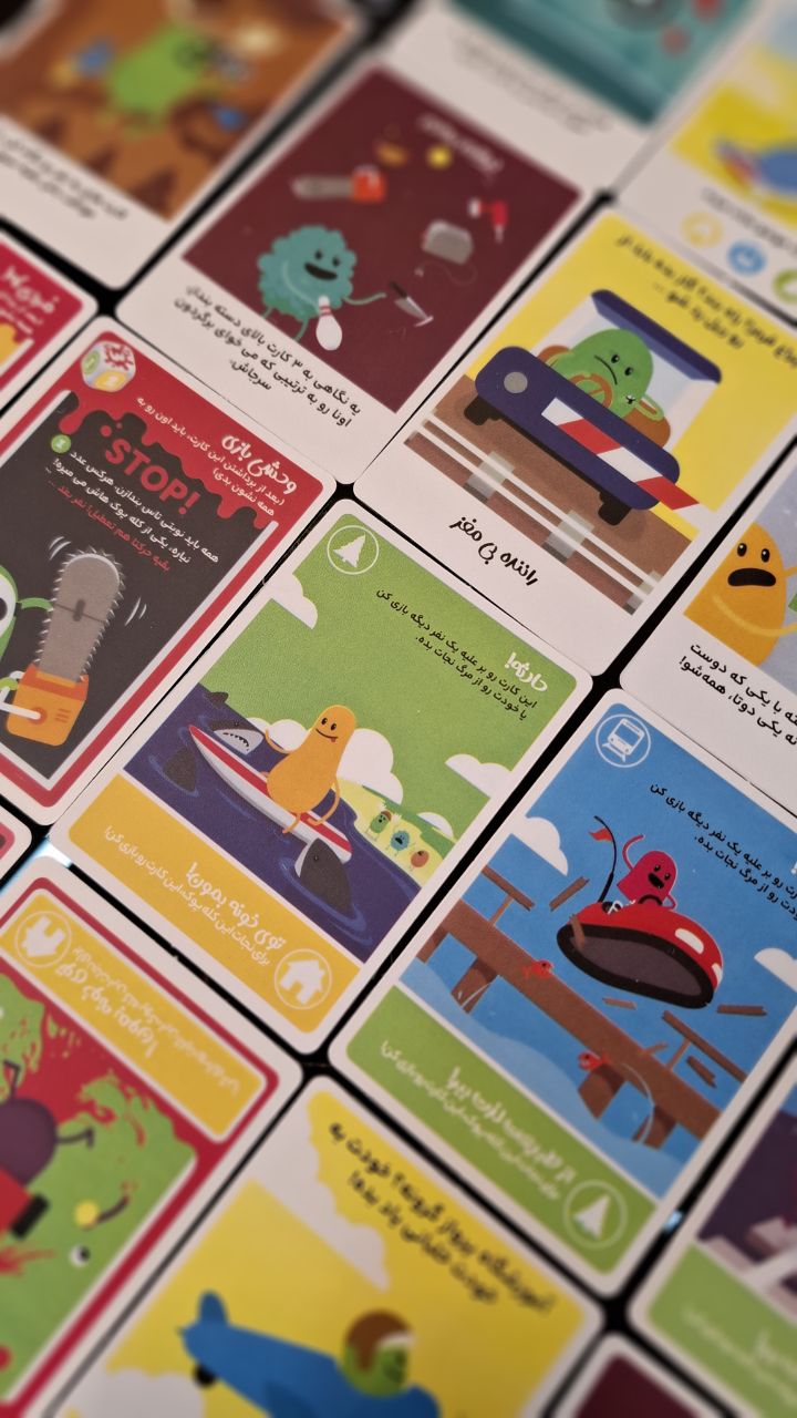 • سپس همهی کارتهای اقدام باقیمانده را با کارتهایی که کنار گذاشتهاید (شامل کارتهای ” مردی که” و “وحشی بازی”با هم مخلوط کرده و بهصورت یک دسته کارت به پشت در مرکز میز قرار دهید.