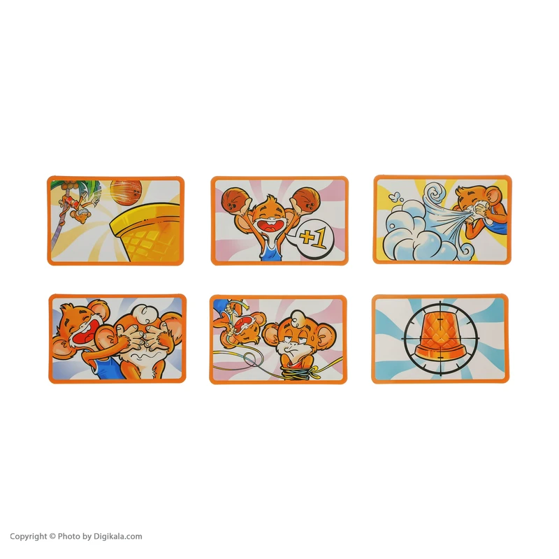 اگه نارگیلش توی اون لیوان نیفته هیچ امتیازی نمی‌گیره. کارت پوچ!: نوبت بازیکن می‌سوزه و نمی‌تونه شلیک کنه. کارت شلیک دوربرد: یکی از لیوان‌ها رو از بقیه‌ی لیوان‌ها عقب‌تر بذارین (فاصله‌ی بازیکن با لیوان باید حداقل نیم متر بشه!)، بازیکنی که نوبتشه باید نارگیلش رو توی اون لیوان بندازه. کارت شلیک در باد: با دادن این کارت به یه بازیکن می‌تونین موقع پرتاب نارگیلش، اونو فوت کنین یا با پنکه یا بادبزن راهشو منحرف کنین! شلیک دوباره: این کارت مخصوص استفاده‌ی خودتونه. اگه این کارتو دارین می‌تونین توی یه نوبت دوبار شلیک کنین!
