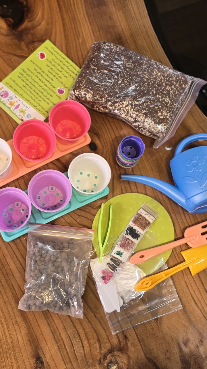 گلدانها در تنوع رنگی و مواد با کیفیت تولید شده اند – بستر ارگانیک کاملا بهداشتی بوده و برای کودکان مناسب می باشند-بیلچه و چنگک باغبانی مناسب اندازه کودکان بوده و بذر مناسب هر فصل استفاده می گردد .