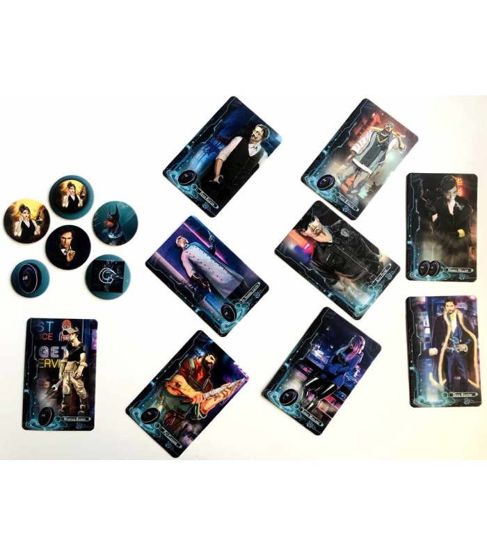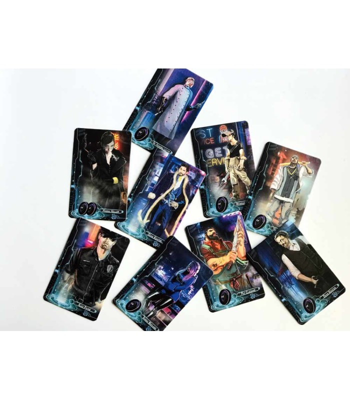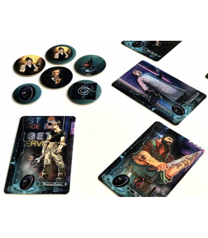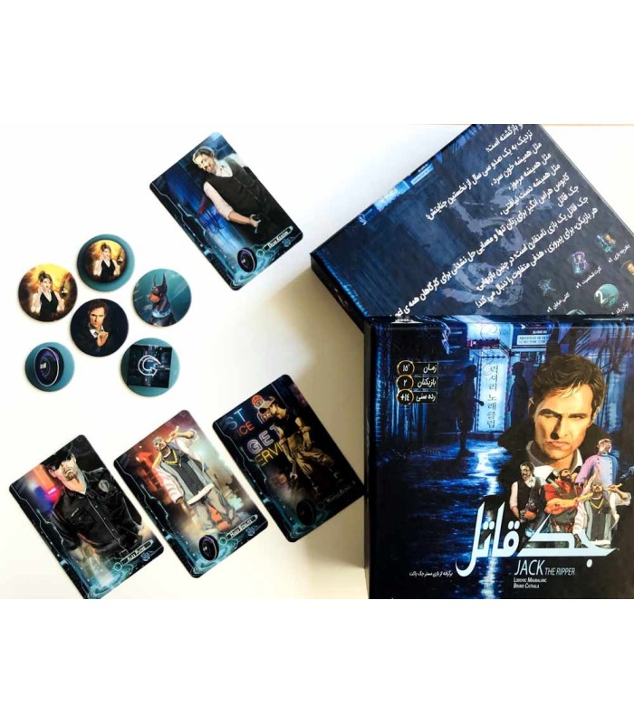 * 9 «کارت شخصیت»: هرکدام از این کارت‌ها، یکی از «شخصیت»هایی را که می‌تواند «جکِ قاتل» باشد، به تصویر می‌کِشند: «مظنونین همیشگی»! برخی از این کارت‌ها، با تصویرِ ۱ یا ۲ «تایمر» علامت‌گذاری شده‌اَند.