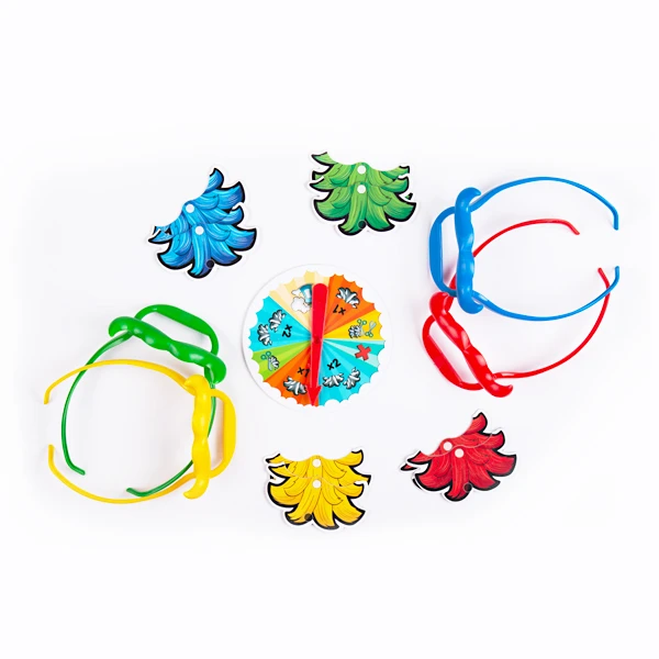 اول از همه دستههای سیبیل رو به هم وصل میکنیم. حالا هر کدوممون یه رنگ رو انتخاب میکنیم و دستهی سیبیل رو مثل عینک میذاریم رو صورتمون. جوری که سیبیل بالای لبمون وایسه. چسبهای زیر و رو رو هم میچسبونیم روی ریشها. چسبهای سفید رو بالا و چسبهای مشکی رو میچسبونیم پایین. حالا نوبت کارتهای ریشه. کارتهای ریش رو به پشت یعنی جوری که کف اصلاحش دیده شه، میچینیم روی میز. گردونه رو هم میذاریم وسط که دست همه بهش برسه. حالا همه چی آمادهست. پس بزن بریم زینگو بازی! حواسمون باشه که برای وصلکردن ریشها روی هم، قسمت بالایی ریش با چسب سفید رو بچسبونیم روی قسمت پایینی ریش قبلی که چسب مشکی داره. (چه ریش رو ریشی شد!)