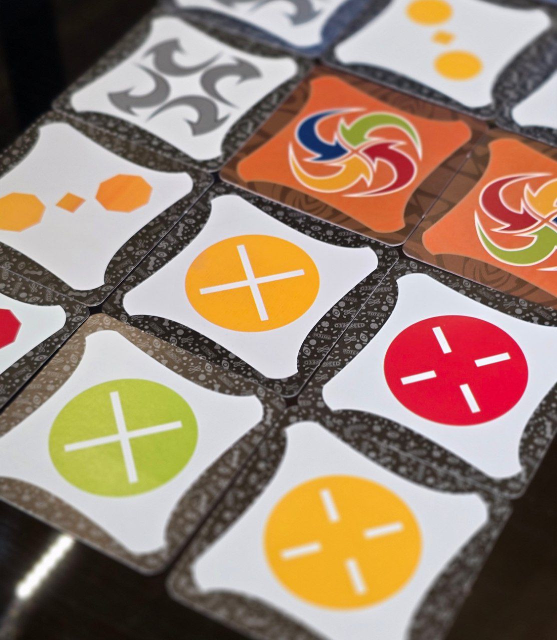 • 72 کارت بازی (72 Game Cards): قلب تپنده بازی همین کارت‌های مربعی شکل هستند. روی هر کارت، یک نماد رنگی وجود دارد. نکته‌ی کلیدی و چالش‌برانگیز بازی این است که بسیاری از این نمادها به شکلی هوشمندانه و فریبنده، بسیار شبیه به هم طراحی شده‌اند. این شباهت‌های ظریف، ذهن شما را به چالش می‌کشد و باعث می‌شود در تشخیص تطابق‌ها دچار خطا شوید که خود منبع اصلی خنده و هیجان در بازی است.
