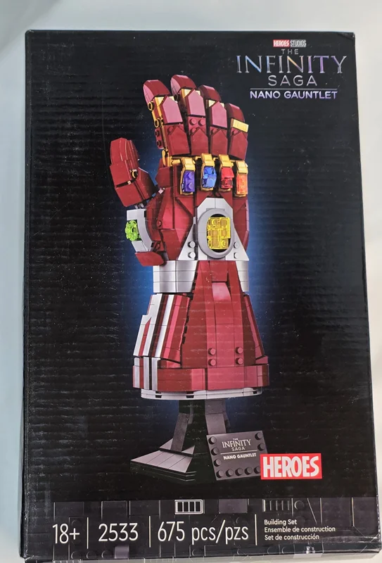 انگشتان این دستکش کاملاً مفصلی هستند و این به شما امکان میدهد که آن را در پوزیشنهای مختلف قرار دهید. این ست، دارای یک پلاک با عنوان NANO GAUNTLET و یک پایه است تا بتوانید آن را بعد از ساخت در جایی مثل قفسه کتابخانه به نمایش بگذارید.