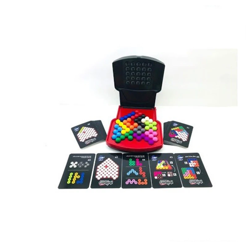 علاوه بر این بازی، بازیکن می تواند با استفاده از تمامی قطعات بازی، هرم سه بعدی را روی صفحه بازی چیدمان کند. این بازی هوش فضایی-دیداری، قدرت تطبیق و قدرت حل مساله بازیکن را افزایش می دهد. توجه داشته باشید که ممکن است رنگ قطعات درون جعبه با رنگ قطعات کارت ها متفاوت باشد. در چیدمان صفحه فقط به شکل قطعات توجه شود. محتویات جعبه: 1 عدد صفحه بازی 12 عدد مهره رنگی 41 عدد کارت بازی