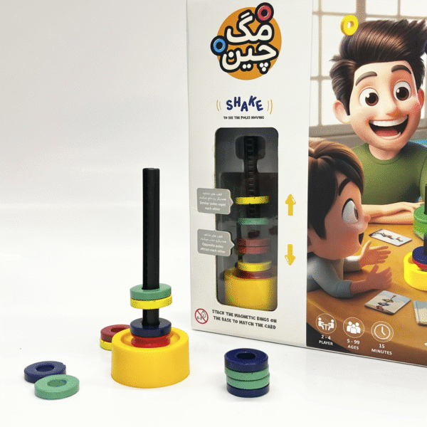 یک سرگرمی فکری و سرعتی بر پایهی آهنربا است که همزمان تمرکز، دقت و هیجان را برای بازیکنان به همراه دارد. در ادامه، توضیح مرحلهبهمرحلهی بازی و جزئیات داخل جعبه آورده شده است:
