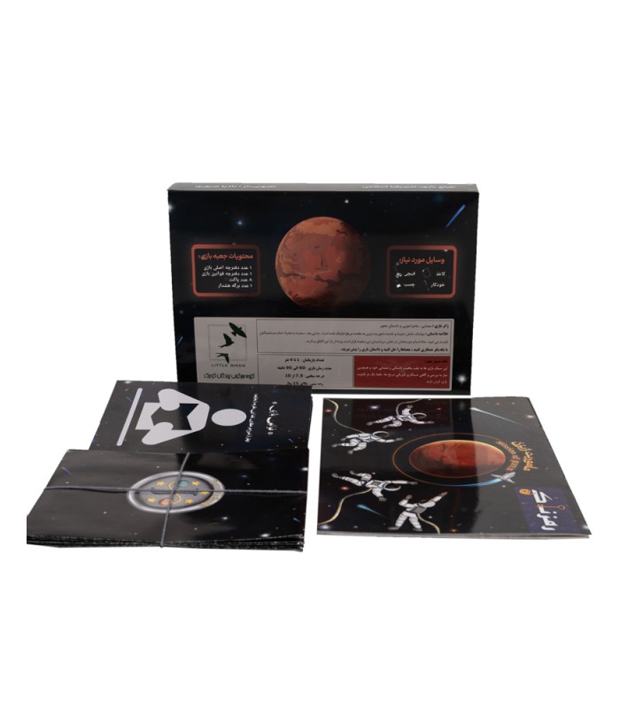 یک عدد دفترچه اصلی بازی – یک عدد دفترچه قوانین – هشت عدد پاکت – یک عدد برگه هشدار